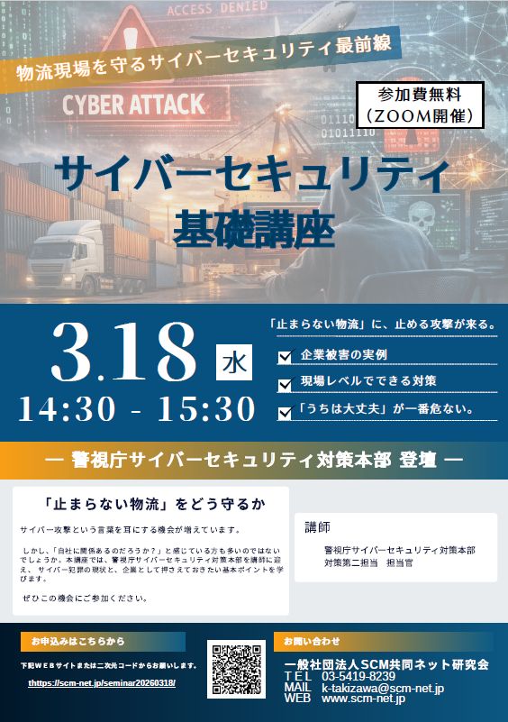 物流現場を守るために、いま知っておくべきサイバーセキュリティの基礎を学ぶオンライン講座を開催いたします。